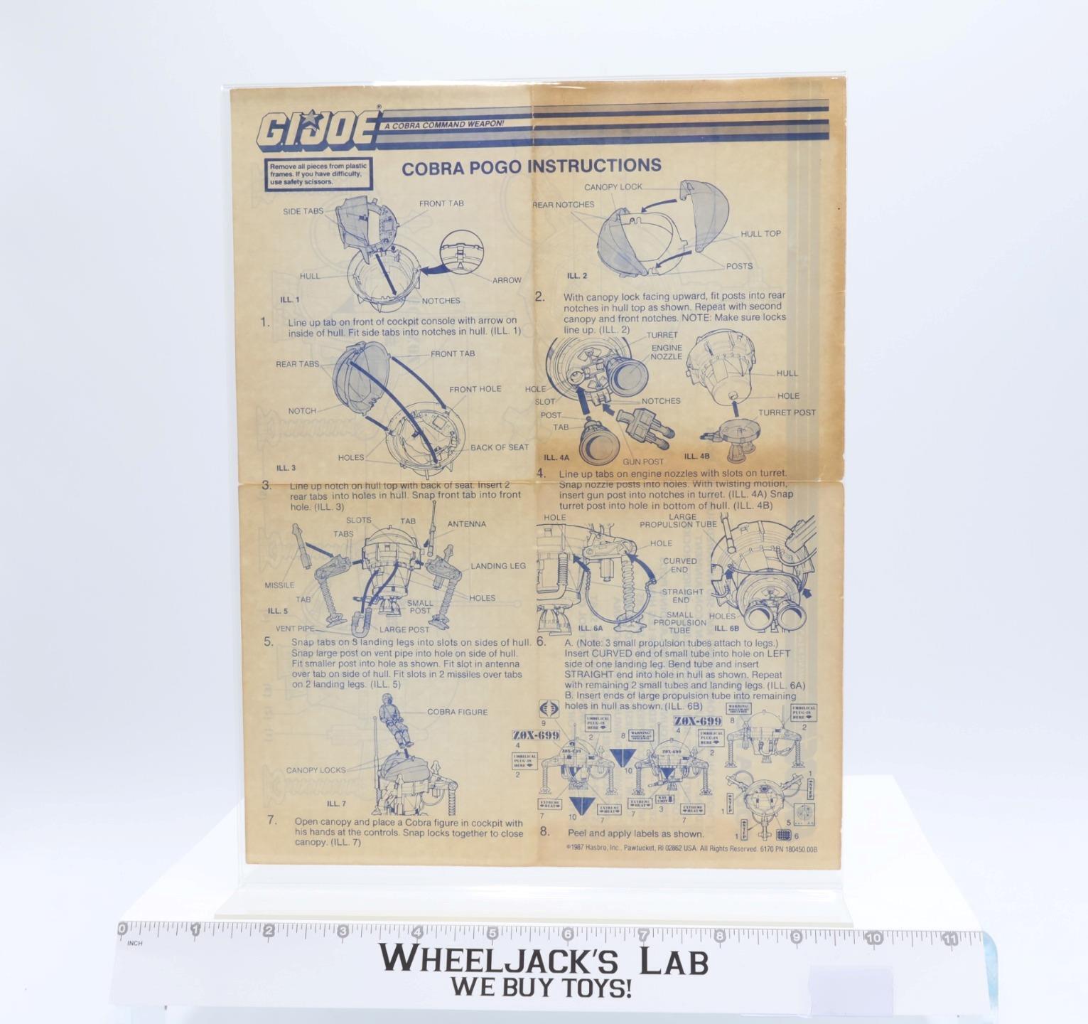Cobra Pogo 1987 ORIGINAL Instructions Blueprints G.I. Joe Hasbro Action Figure